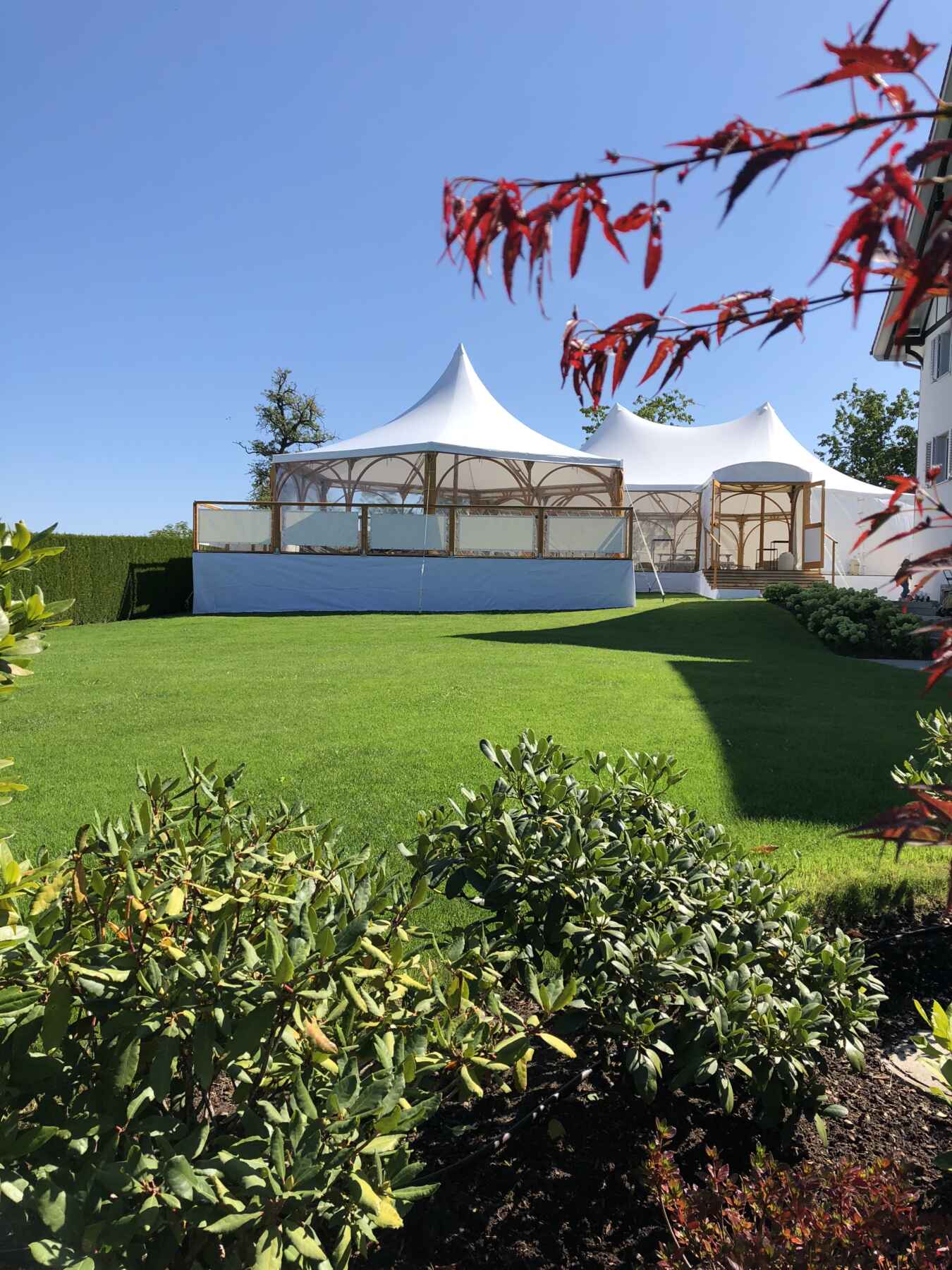 Die eleganten und charismatischen Chapiteau Zelte werden speziell für Ihren Anlass, an dem von Ihnen gewünschten Ort aufgebaut. Auch in der Grösse und Ausführung sind die temporären Bauten mit luxuriösem Touch variabel. Mit offenem Bogendach oder gedeckt mit Pendeltüre, mit oder ohne Entrée. Massgeschneiderte Anlässe im Garten oder Park lassen sich so planungssicher und stimmungsvoll inszenieren.
