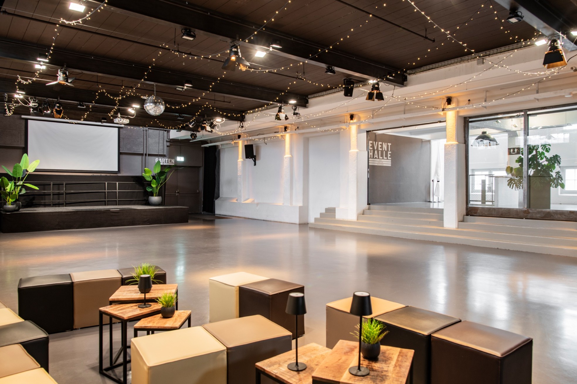 Originally built as a factory, the Stufenbau in Berne has been the backdrop for various parties and events for over 30 years now. The industrial architecture creates big halls flooded with light, and the garden sets the scene for a relaxing summer evening surrounded by greenery. The multifunctional rooms can be set up in many different ways to allow up to 600 guests to celebrate any kind of occasion.