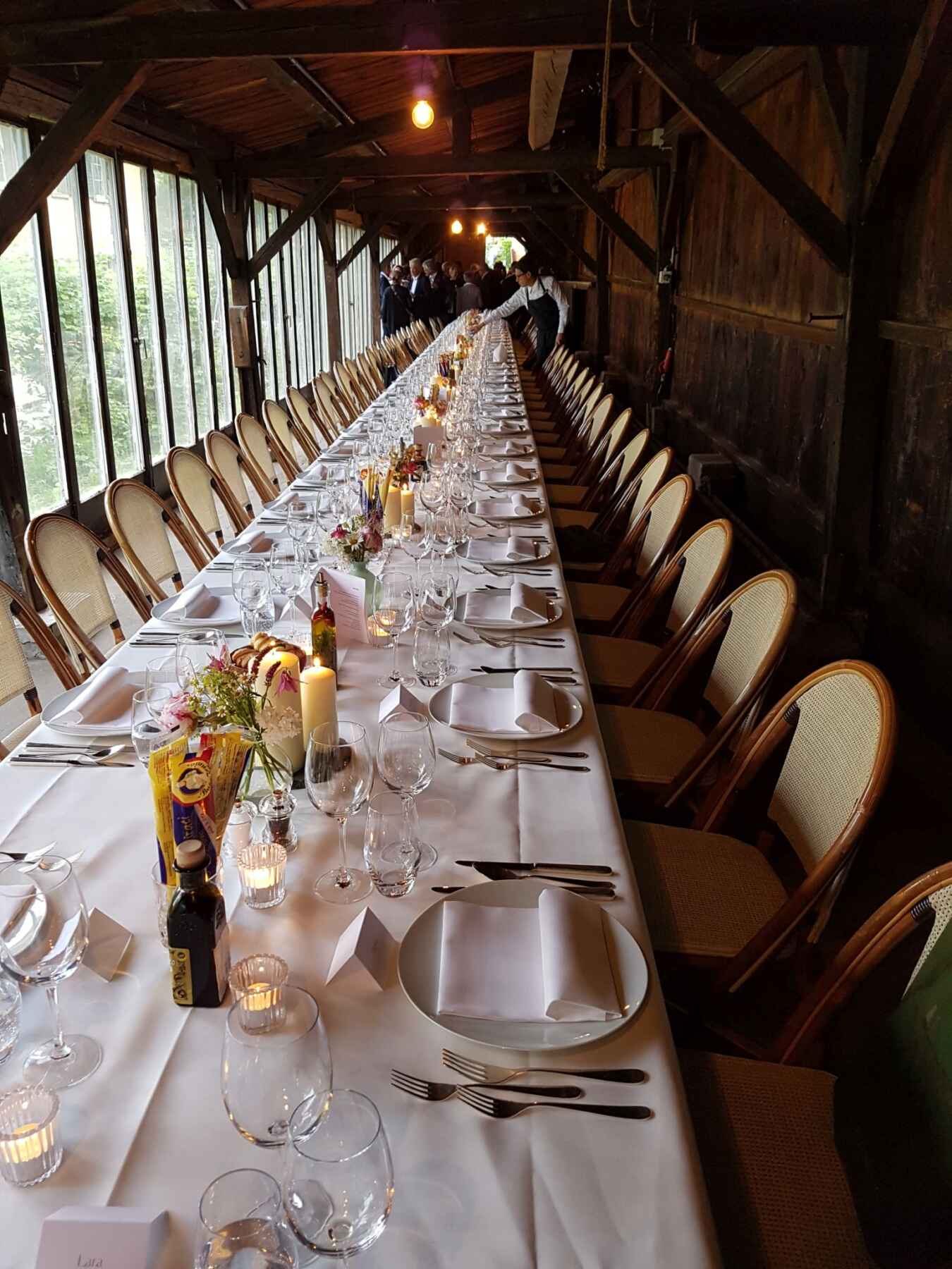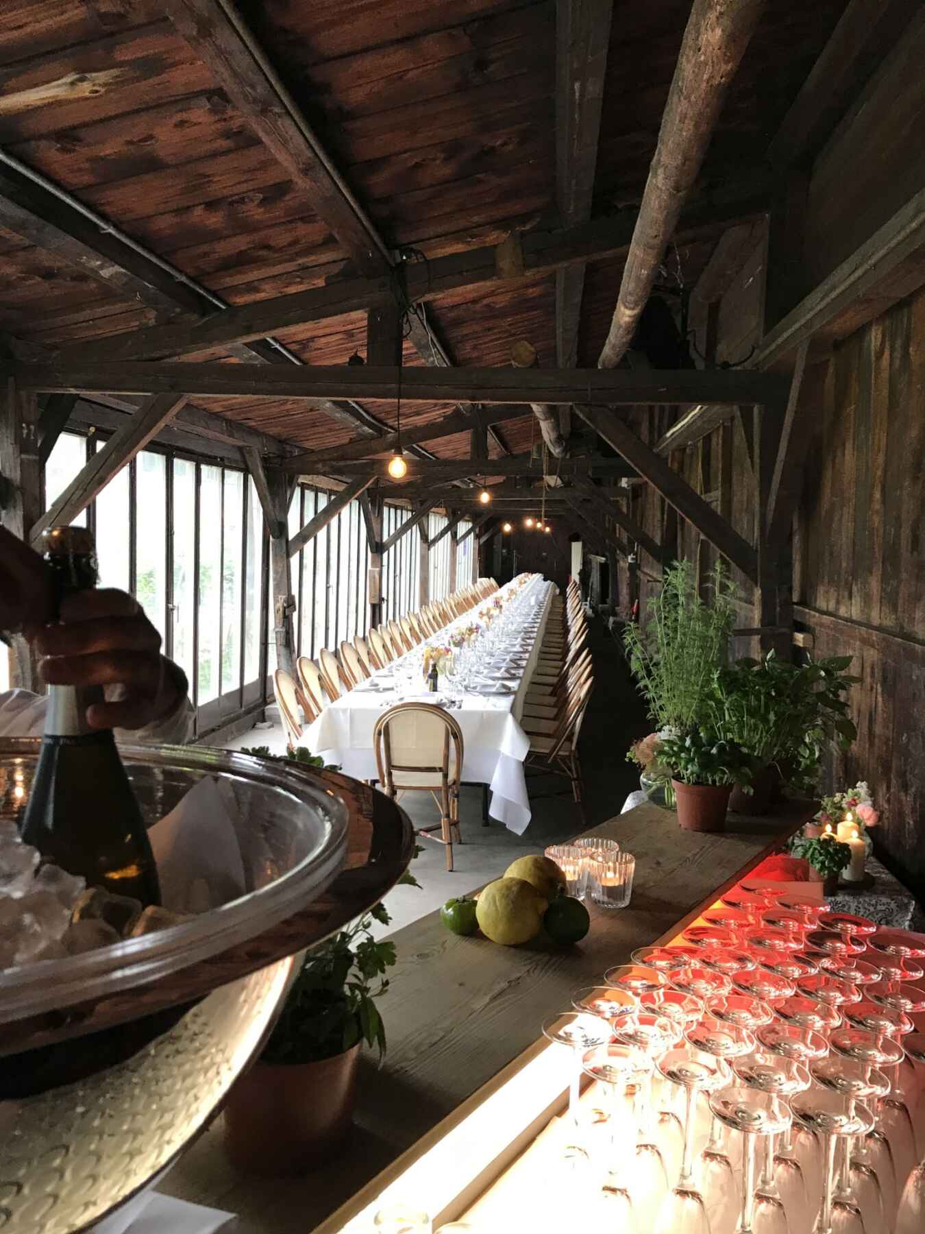 In the centre of Zurich, right by the Bellevue you can find La Corderia. The historic rope factory is rentable and offers a unique space for hosting events. As a protected building, it is prohibited to heat the room, therefore it is mainly suitable for the warmer months. Despite how central it is, the premise feels like it is set in the countryside, as the window front overlooks the big neighbouring garden which provides the privacy for a relaxing atmosphere. The long and narrow architecture creates an interesting sense of space that provides a stunning set for a long dinner table or a laid back Apéro.