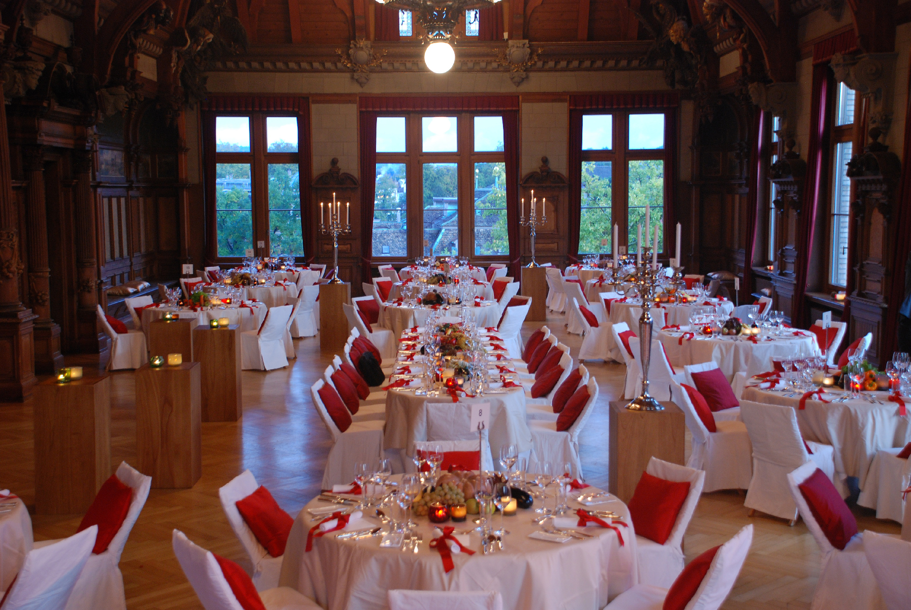 The auditorium on the 3rd floor is the heart of the historic school building, which opened in 1893. The richly decorated wooden vaulted ceiling, the gigantic chandelier and the view of the nearby old town of Zurich are simply breathtaking. In addition, the fairy tale hall on the ground floor with access to the courtyard is ideal for an aperitif or after-party.
