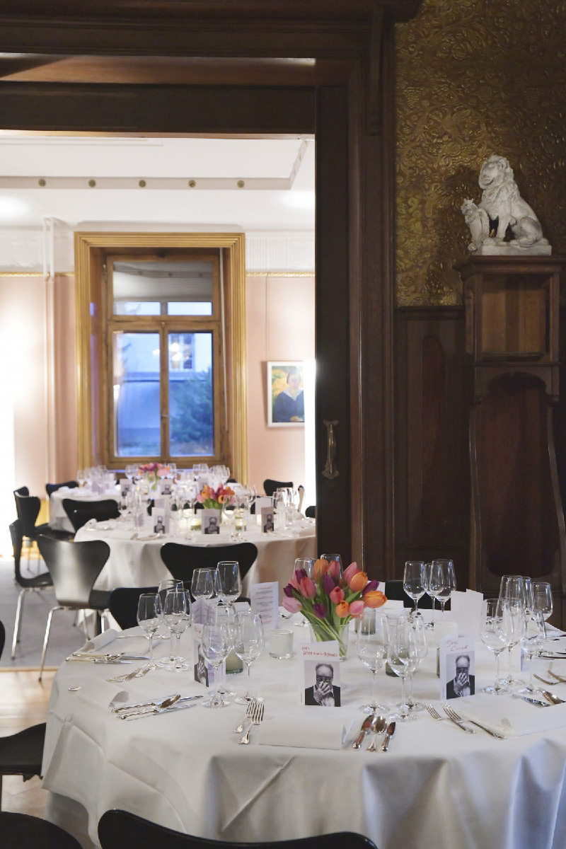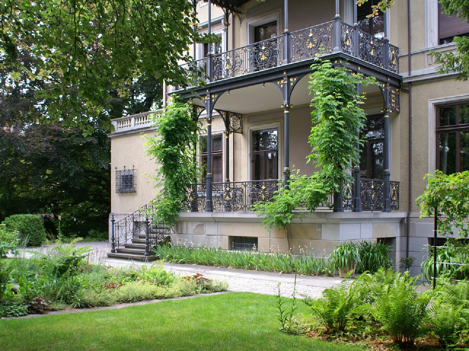 The lush Art Nouveau interior of Villa Tobler transports you back to the penultimate century. The Belétage includes the pink salon, the silver salon, the dining room, the library and the cozy fireplace room. The garden with its pergola and dragon fountain is a real treasure in the middle of the old town.